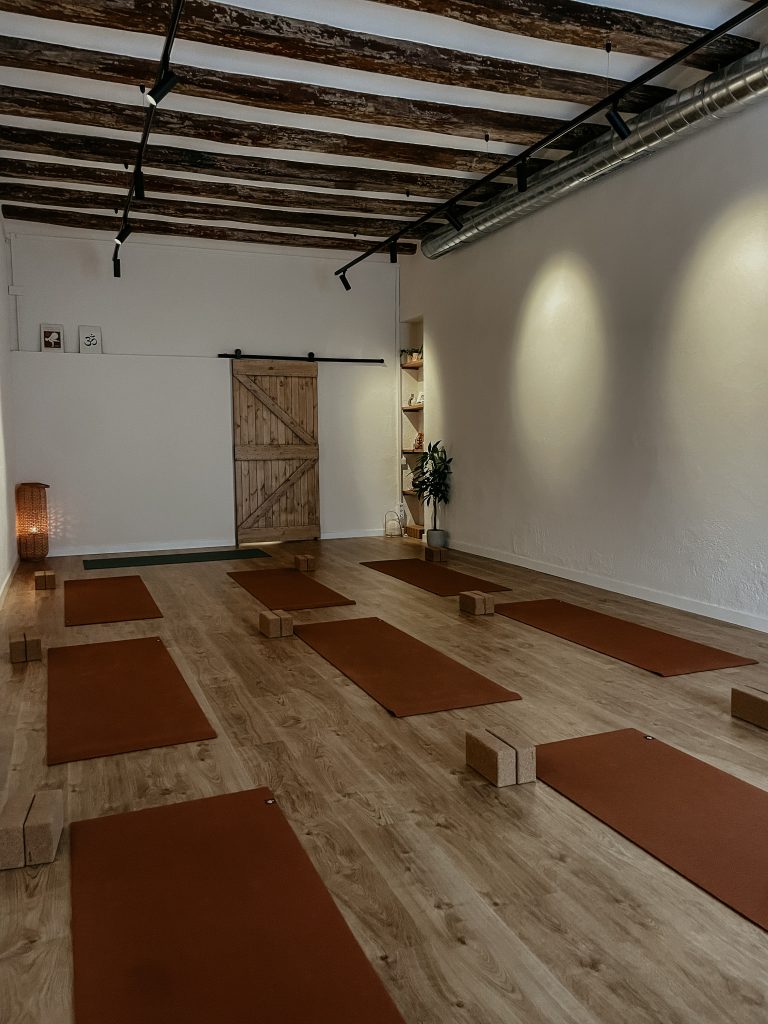 Està equipada amb tot el material necessari per a la pràctica de ioga (mats, blocs, cinturons, bolsters i mantes).